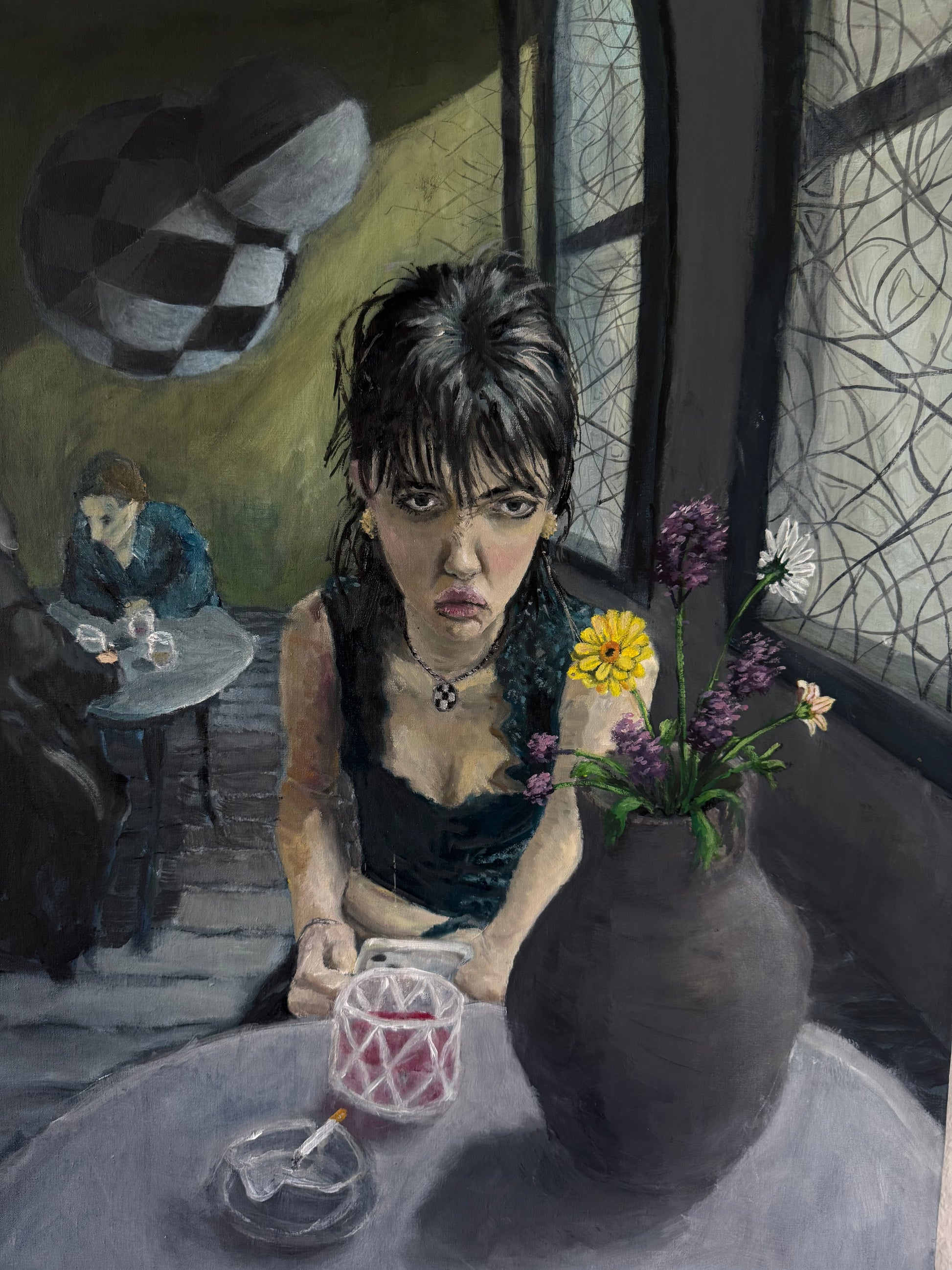 A distinguished oil painting on canvas measuring 60cm by 90cm, created by artist Ruben Tönnis. This work exemplifies traditional painting techniques applied to contemporary subject matter, offering collectors a substantial piece.